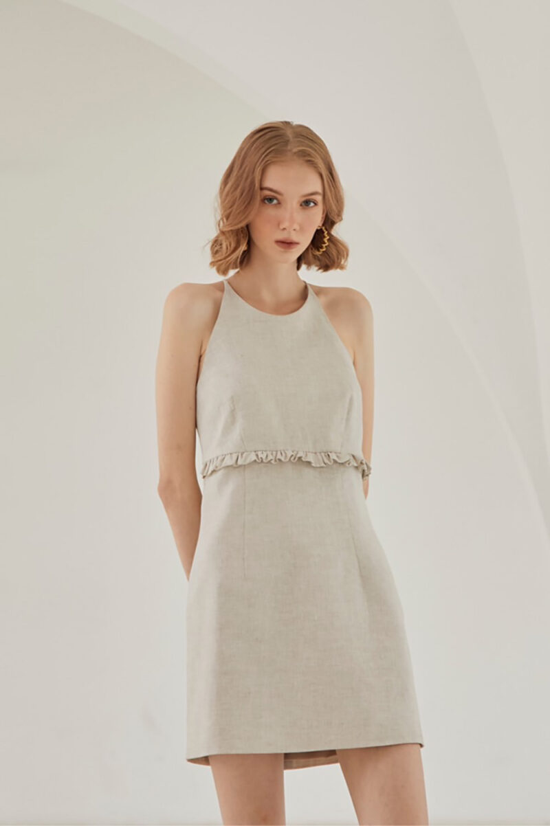 เดรสที่ให้ความผสมผสานระหว่างความหวานและความเปรี้ยวไปในตัวเดียวกัน เป็นเดรสสั้นเข้ารูปเล็กน้อยให้ผู้ใส่ดูผอมเพรียว มีดีเทลตกแต่งตกแต่งจีบเล็กๆตรงเอวมีความกุ๊กกิ๊กน่ารัก พร้อมกับความเผ็ชเปิดหลังให้ความเซ็กซี่เบาๆ รุ่นนี้จะมีบราในตัวเพื่อให้ใส่ได้ง่าย ตัวเดียวจบ สามารถใส่ไปเที่ยวทะเล ขึ้นเขา ออกเดท หรือสวมสูททับไปทำมำงานก็ได้ค่ะ ผ้าลินินรองกาวและมีซับในทั้งตัว เป็นอีกไอเท็มที่แนะนำมากๆค่ะ