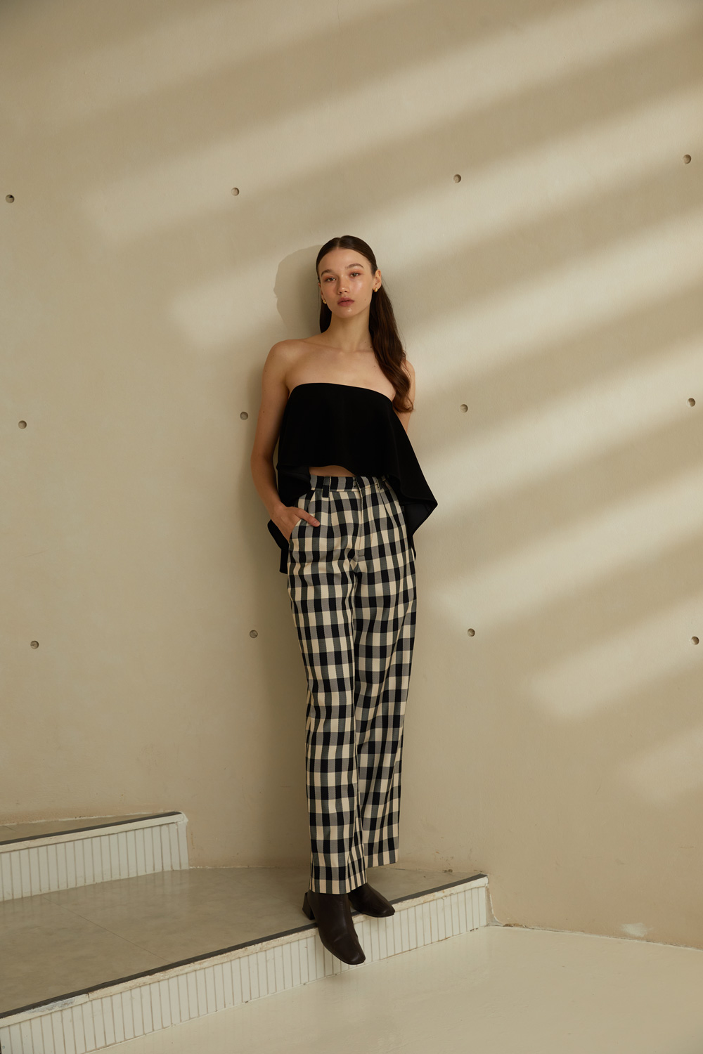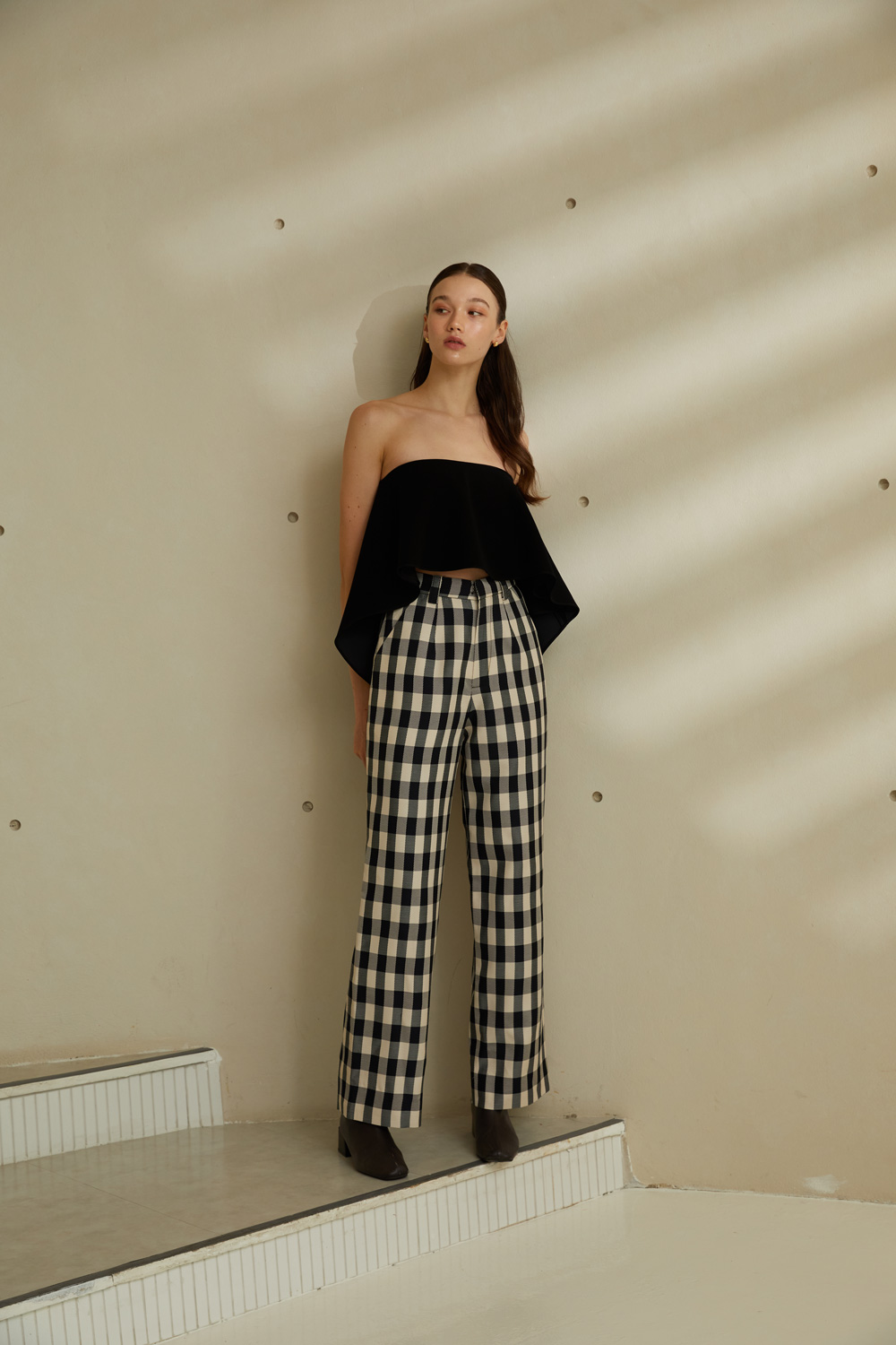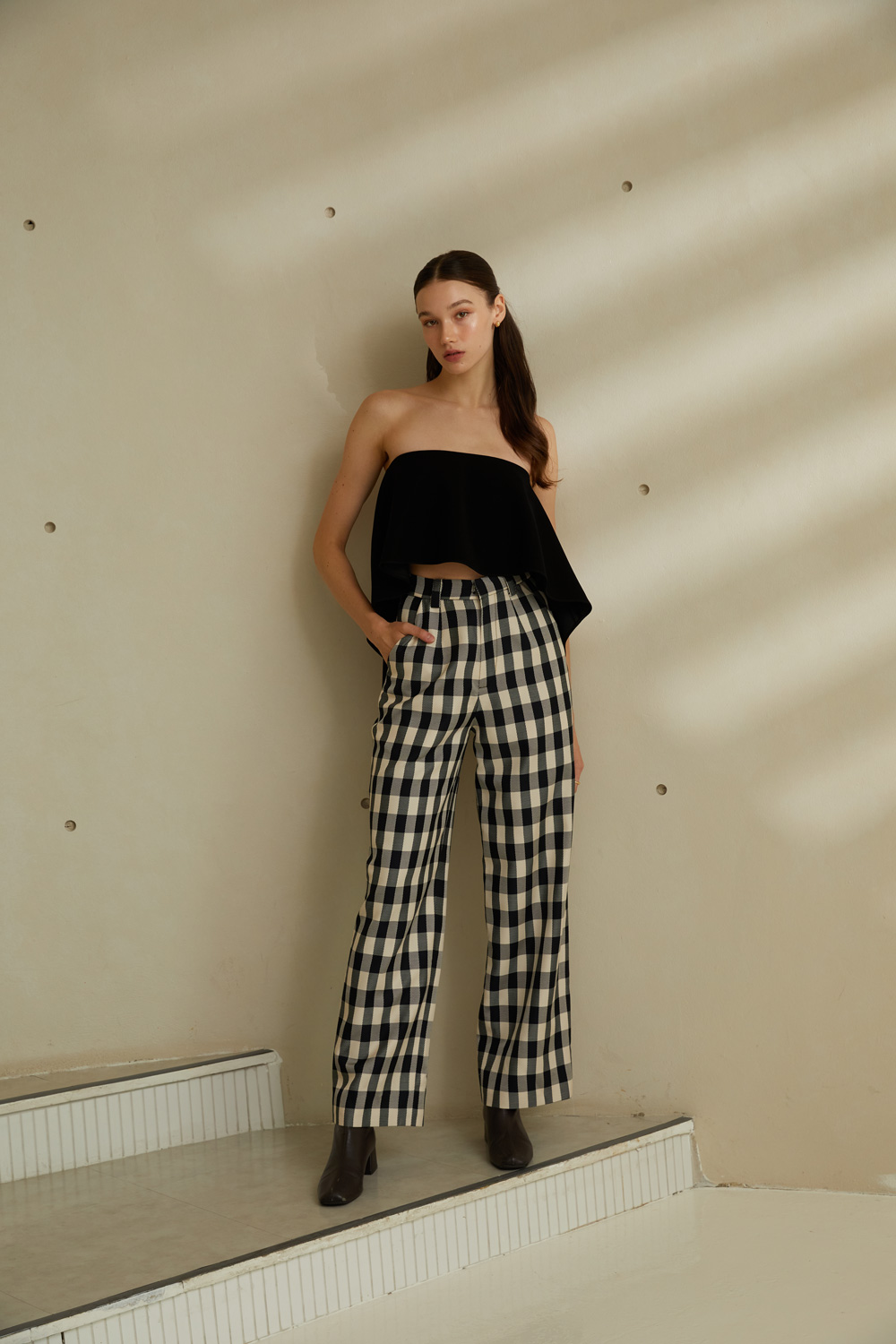กางเกงขายาวเอวสูง ลายตารางขาวดำสุดคลาสสิค ใส่แล้วเก็บทรงพรางหุ่นได้ดีมากๆ เนื้อผ้ามีความพริ้วและใส่สบาย ผ้ารองกาวและมีซับในทั้งตัว เป็นอีกรุ่นแนะนำที่ต้องมีติดตู้ไว้เลยค่ะ