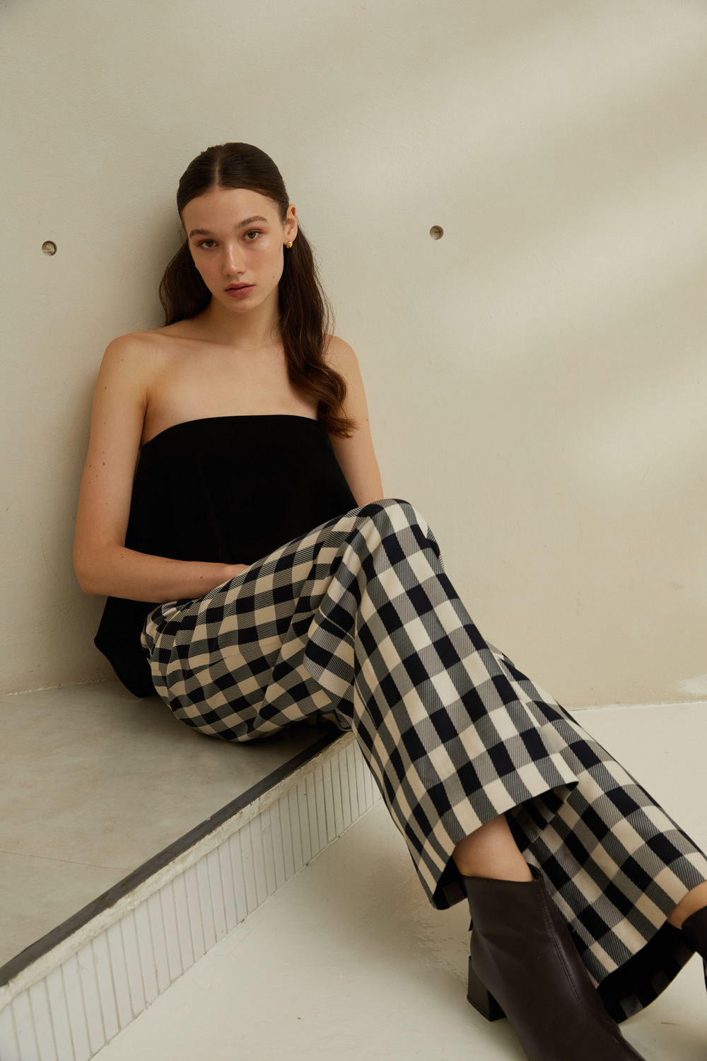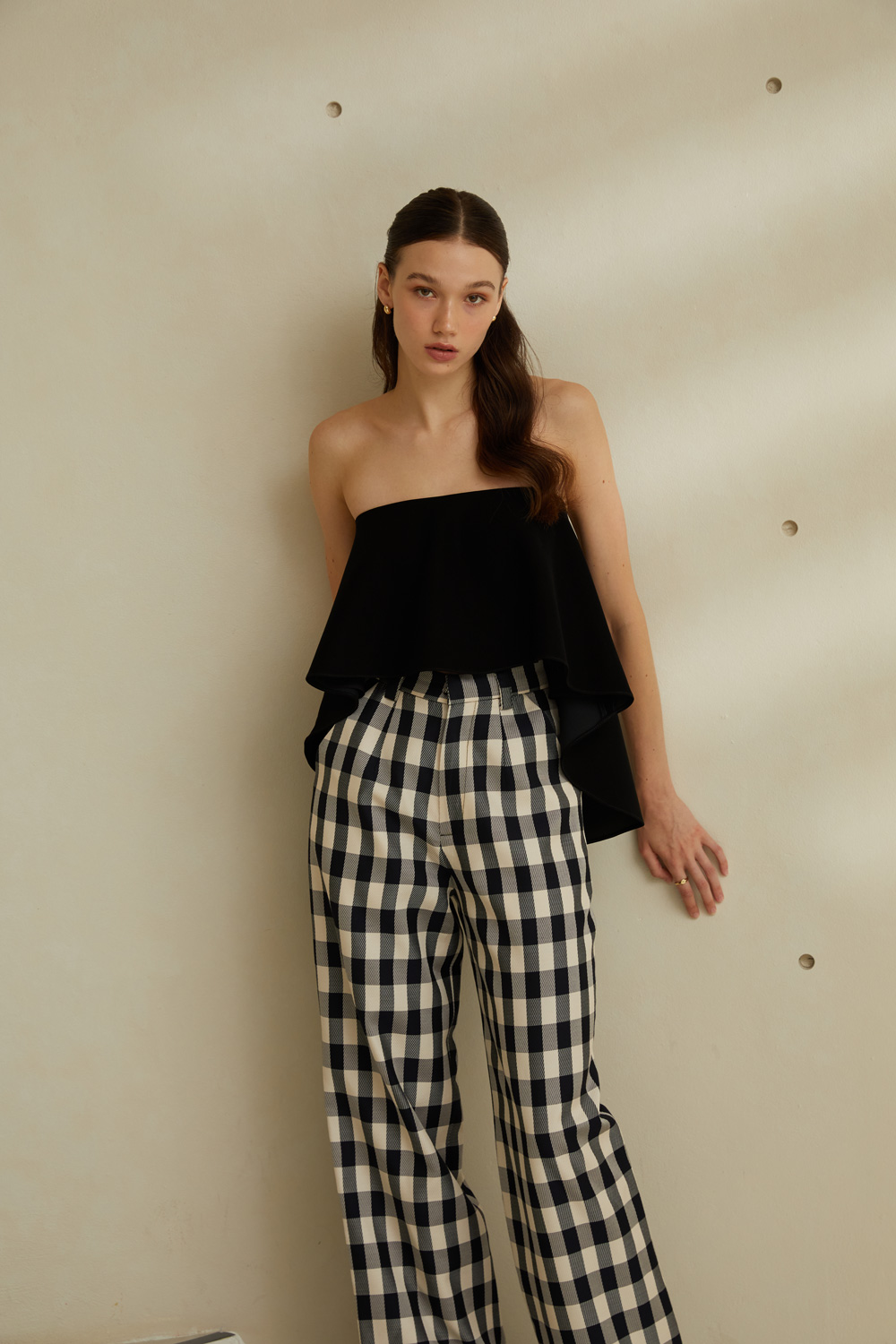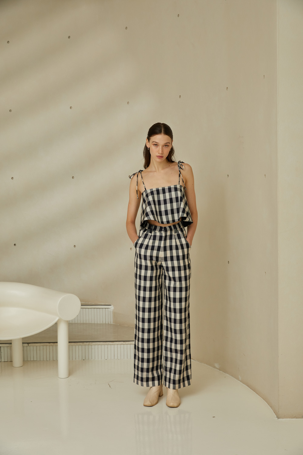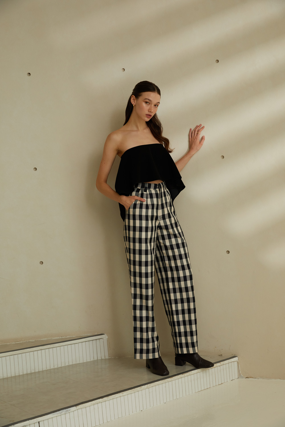 กางเกงขายาวเอวสูง ลายตารางขาวดำสุดคลาสสิค ใส่แล้วเก็บทรงพรางหุ่นได้ดีมากๆ เนื้อผ้ามีความพริ้วและใส่สบาย ผ้ารองกาวและมีซับในทั้งตัว เป็นอีกรุ่นแนะนำที่ต้องมีติดตู้ไว้เลยค่ะ
