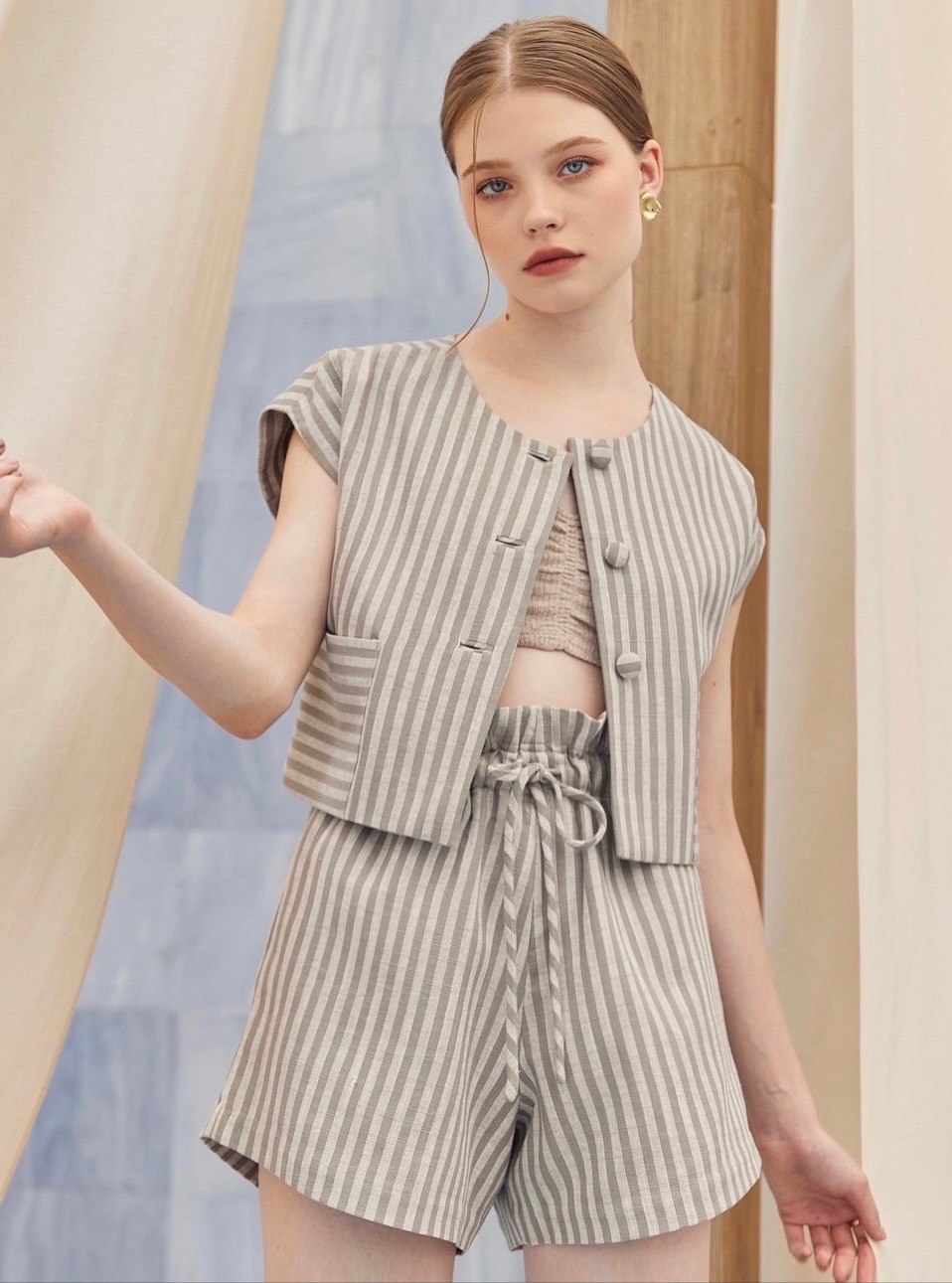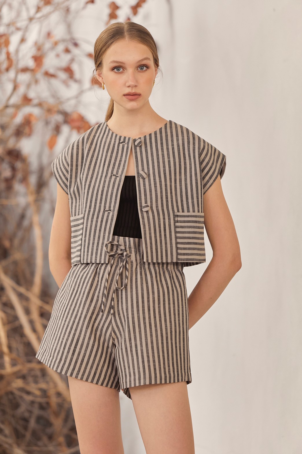 กางเกงขาสั้นเอวสูง ที่เราทำมาเอาใจคนที่อยากนำไปใส่เที่ยวด้วยให้มีความน่ารักมากขึ้น ด้วยการปรับช่วงเอวให้เป็นสายผูกสามารถปรับความแน่นหลวมของเอวได้ตามใจเลยค่ะ เนื้อผ้าลินินผสมคอตตอน รองกาวทั้งตัวและมีซับในรับรองความเรียบหรู รุ่นนี้สามารถนำไปแมทช์กับเสื้อสายเดี่ยวหรือเสื้อ Croffle ก็น่ารักมากๆค่ะ เป็นไอเท็มที่แนะนำว่าต้องมีติดตู้ไว้เลยค่ะ