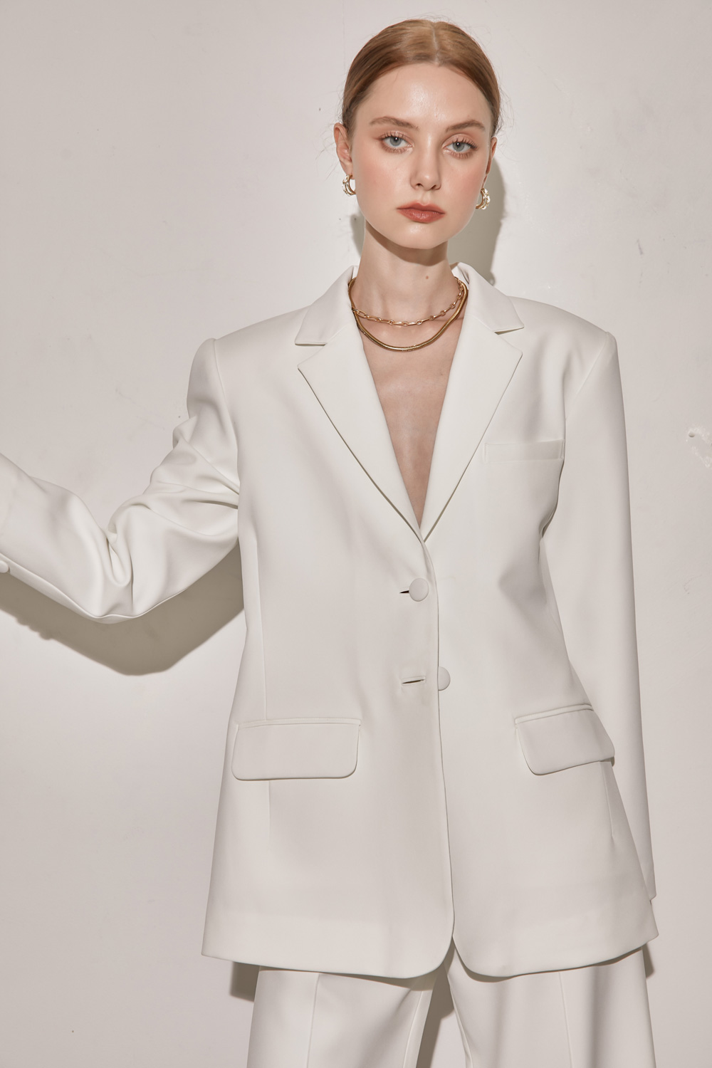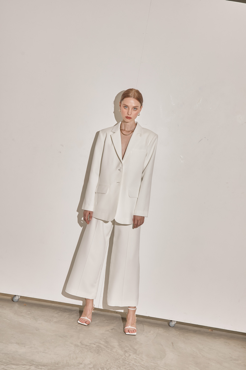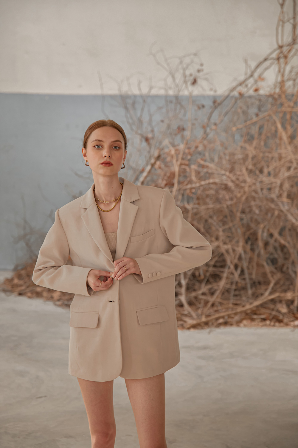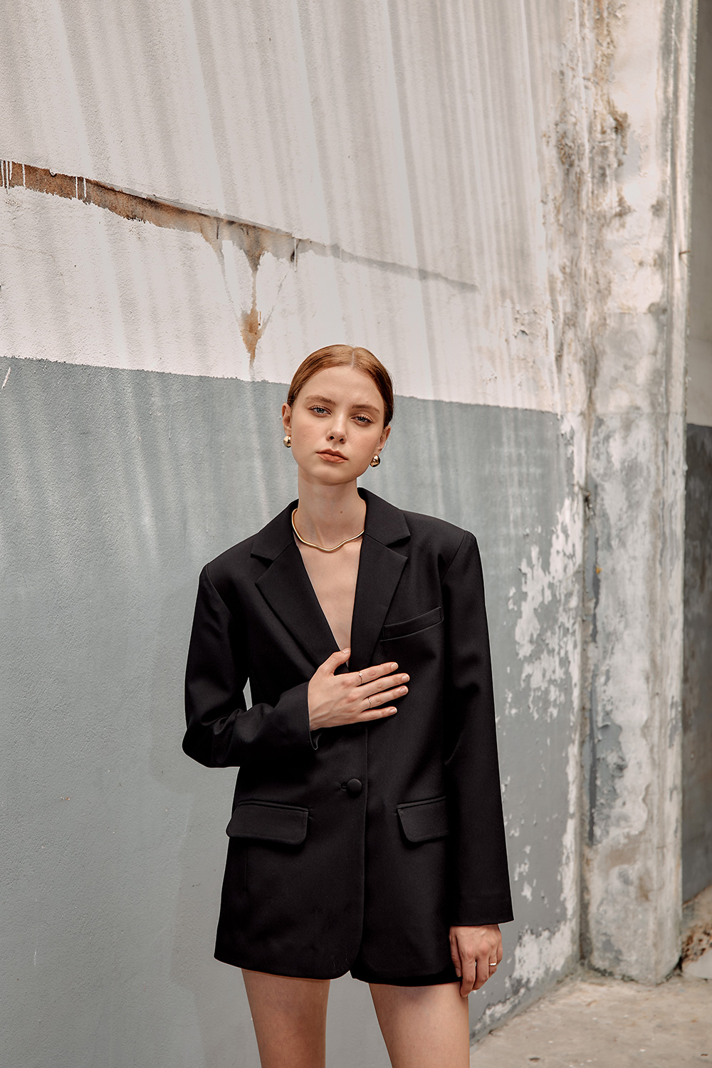 เสื้อสูททรงโอเวอร์ไซส์เสริมไหล่ให้ความสง่าเวลาสวมใส่ไปทำงานหรือออกงานต่างๆ เนื้อผ้าไม่หนาและไม่บางจนเกินไปสามารถใส่เมืองไทยได้ไม่ร้อนค่ะ จะสวมใส่แบบเป็นเสื้อคลุมกับกางเกงขายาวหรือใส่กับขาสั้นติดกระดุมเป็นกึ่งมินิเดรสไปเที่ยวก็น่ารักมากๆค่ะ ผ้ารองกาวและมีซับในเย็บกลับทั้งตัว เป็นอีกเบสิคไอเท็มที่ควรมีติดตู้กันไว้คนละตัวสองตัวเลยค่ะ