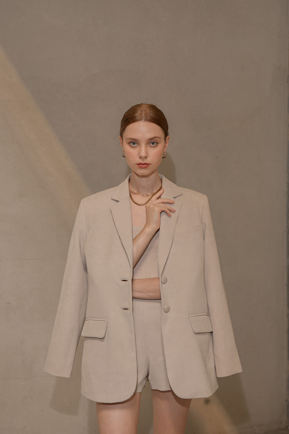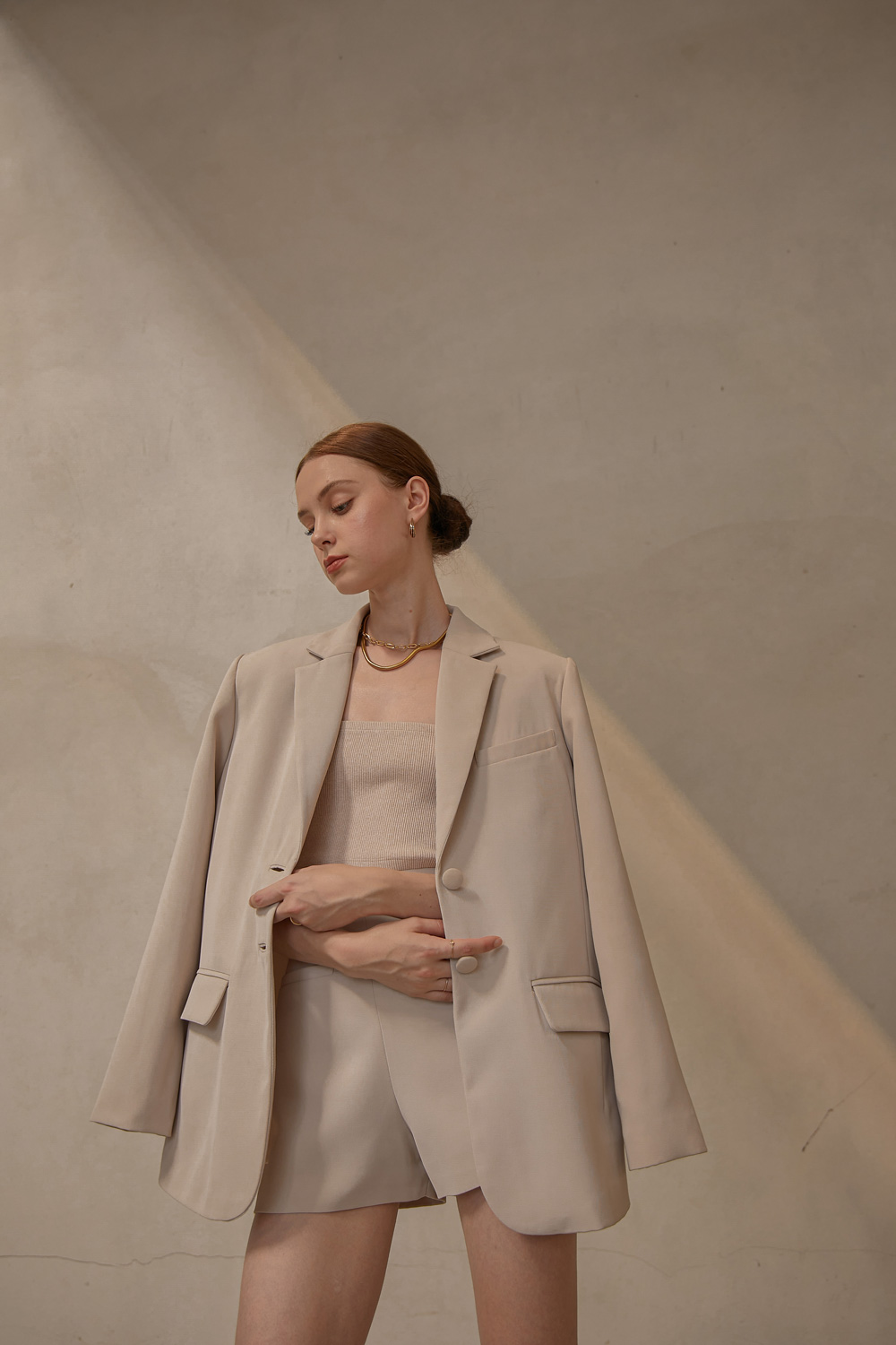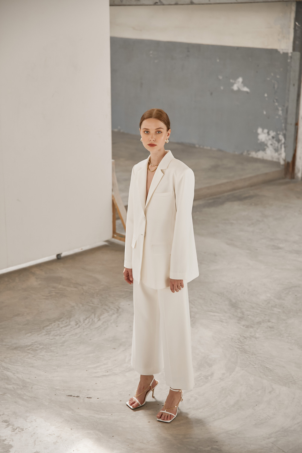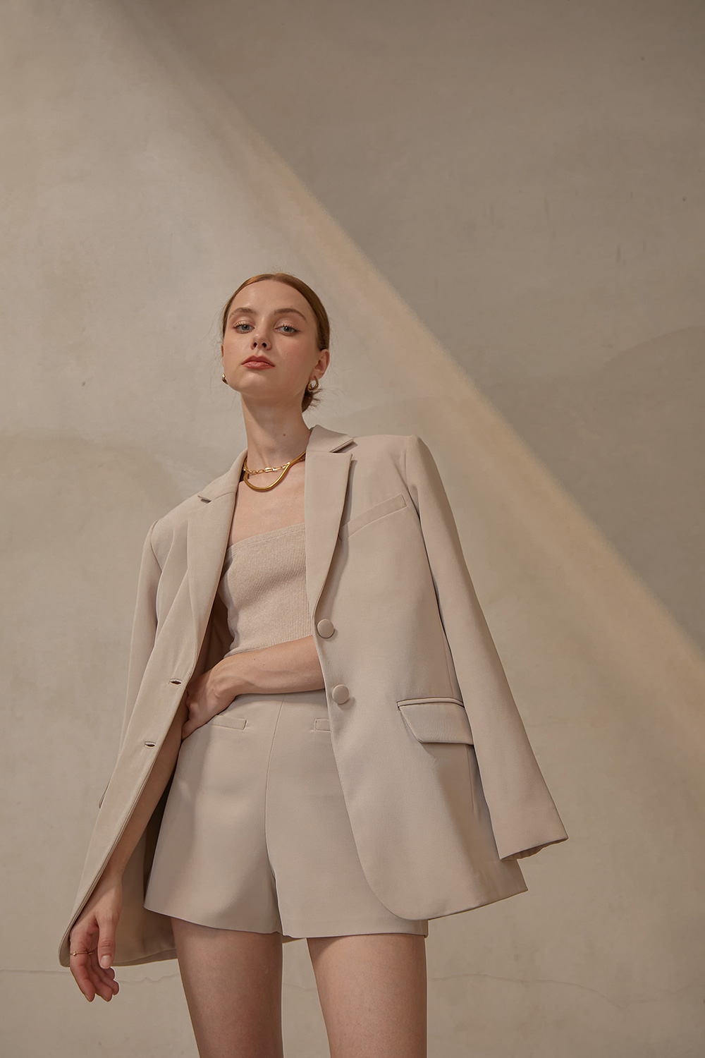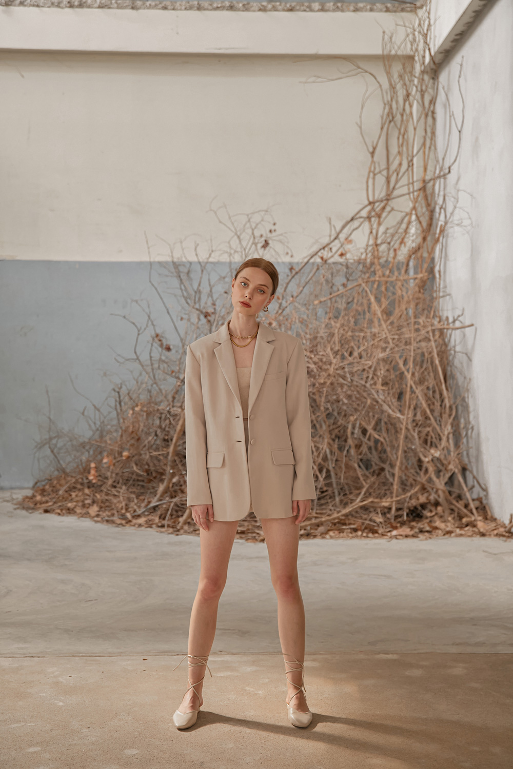 เสื้อสูททรงโอเวอร์ไซส์เสริมไหล่ให้ความสง่าเวลาสวมใส่ไปทำงานหรือออกงานต่างๆ เนื้อผ้าไม่หนาและไม่บางจนเกินไปสามารถใส่เมืองไทยได้ไม่ร้อนค่ะ จะสวมใส่แบบเป็นเสื้อคลุมกับกางเกงขายาวหรือใส่กับขาสั้นติดกระดุมเป็นกึ่งมินิเดรสไปเที่ยวก็น่ารักมากๆค่ะ ผ้ารองกาวและมีซับในเย็บกลับทั้งตัว เป็นอีกเบสิคไอเท็มที่ควรมีติดตู้กันไว้คนละตัวสองตัวเลยค่ะ