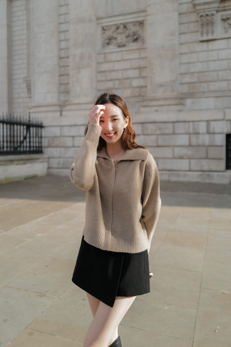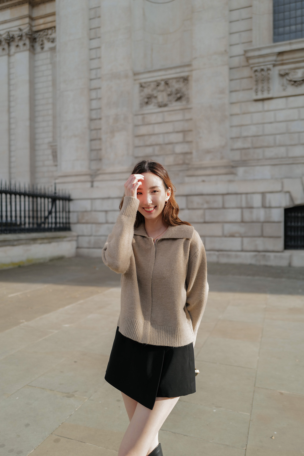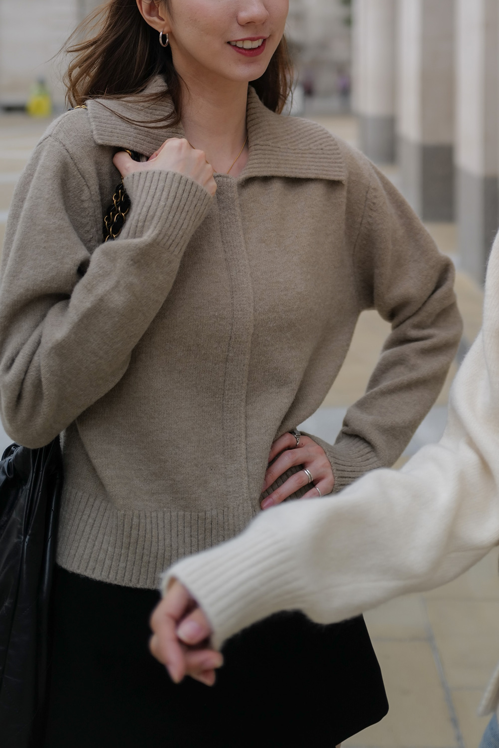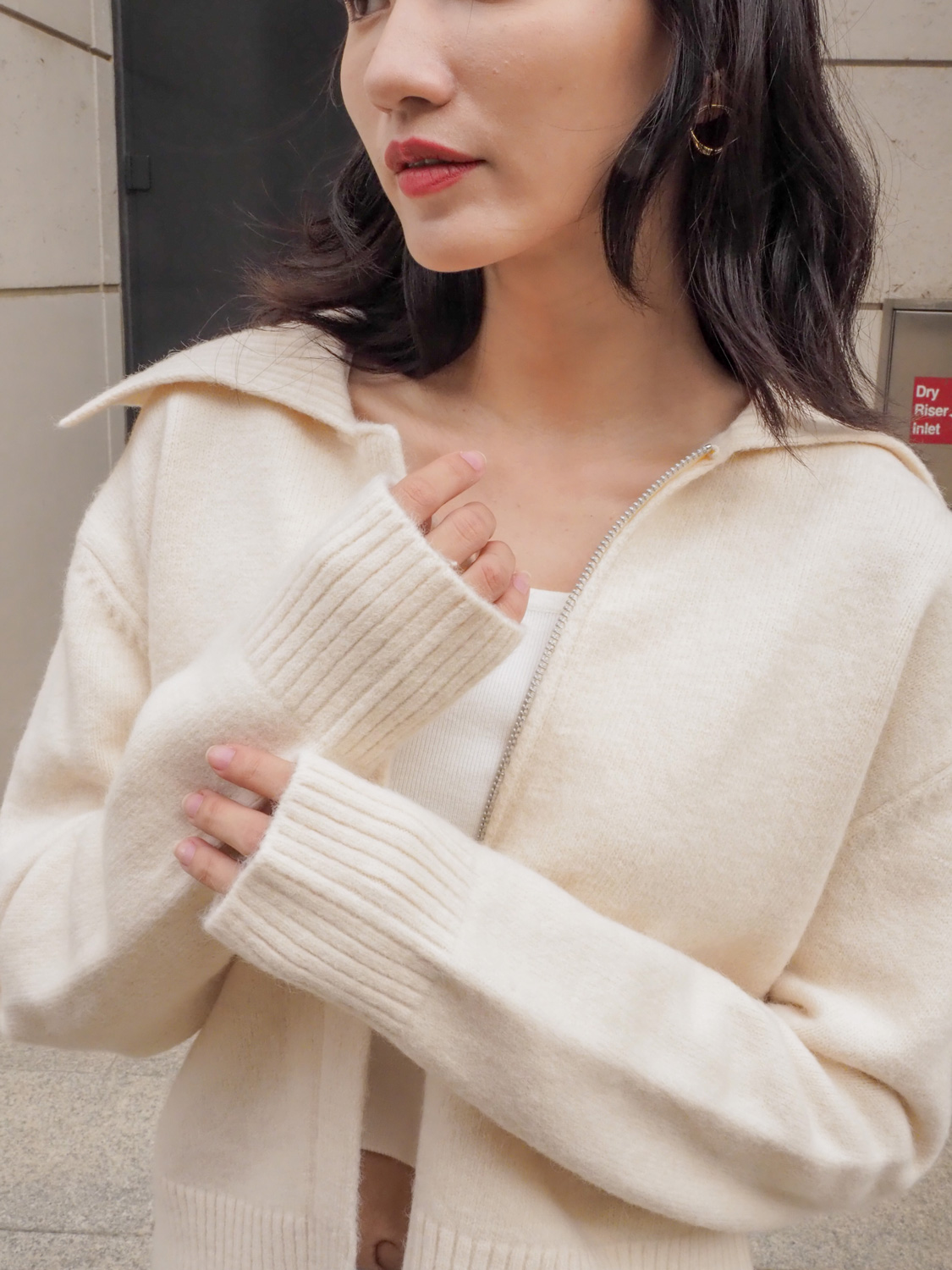 สเวตเตอร์คอปกมีซิปตรงกลาง มีกิมมิคคือเป็นซิปซ่อนทำให้เวลาใส่จะไม่เห็นซิป เนื้อผ้ามีความนุ่มนิ่ม ใส่สบาย สามารถใส่กันหนาว กันลมได้จริง น้องสามารถใส่ได้ 2 แบบ คือใส่แบบเปิดเป็นเสื้อคลุม หรือรูดใส่ซิปเป็นสเวตเตอร์คูลๆ สามารถแมทช์ได้สนุกมากๆ ใส่กับกางเกงยีนส์หรือกระโปรงสั้น-ยาวก็น่ารัก Must Have Item เลยค่ะ