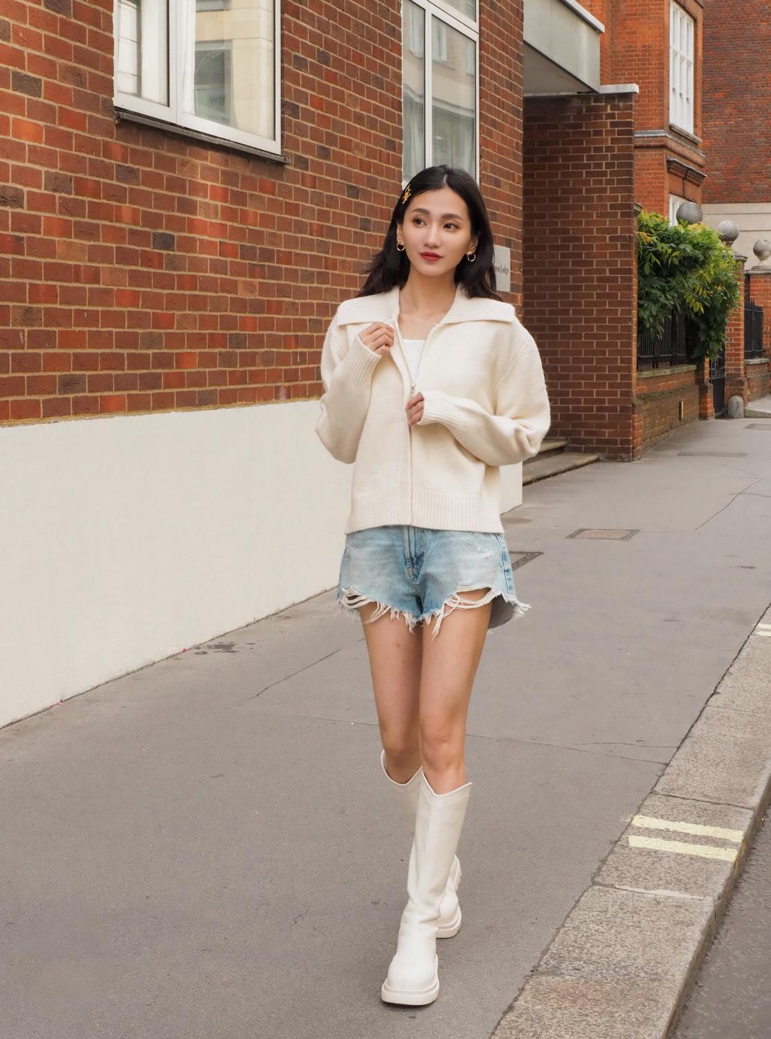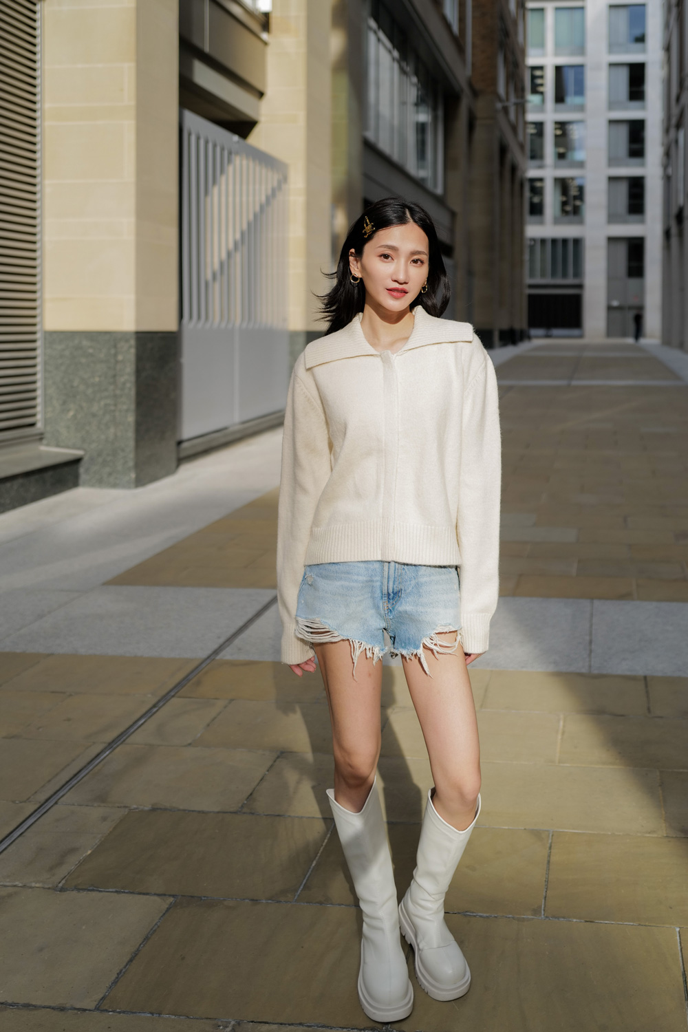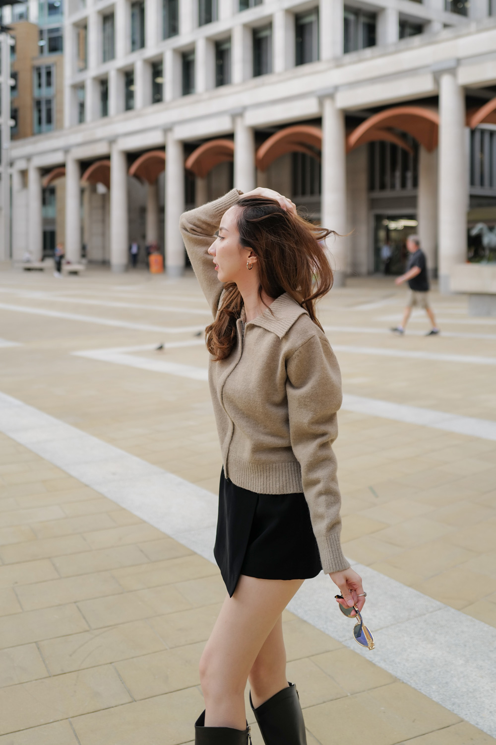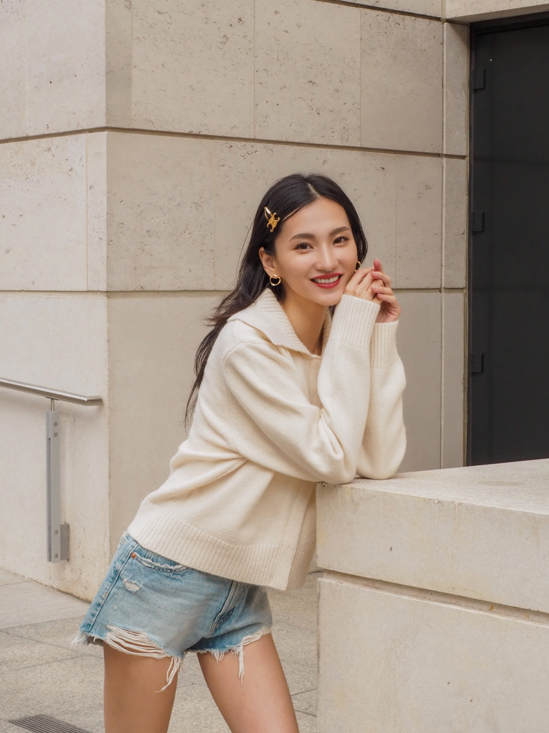 สเวตเตอร์คอปกมีซิปตรงกลาง มีกิมมิคคือเป็นซิปซ่อนทำให้เวลาใส่จะไม่เห็นซิป เนื้อผ้ามีความนุ่มนิ่ม ใส่สบาย สามารถใส่กันหนาว กันลมได้จริง น้องสามารถใส่ได้ 2 แบบ คือใส่แบบเปิดเป็นเสื้อคลุม หรือรูดใส่ซิปเป็นสเวตเตอร์คูลๆ สามารถแมทช์ได้สนุกมากๆ ใส่กับกางเกงยีนส์หรือกระโปรงสั้น-ยาวก็น่ารัก Must Have Item เลยค่ะ
