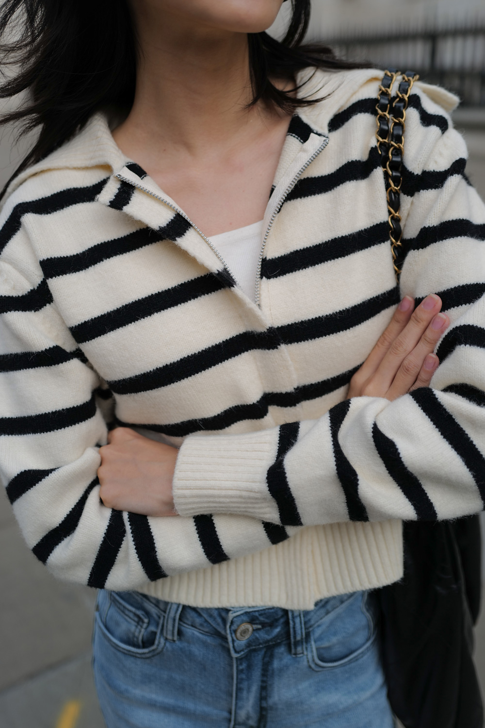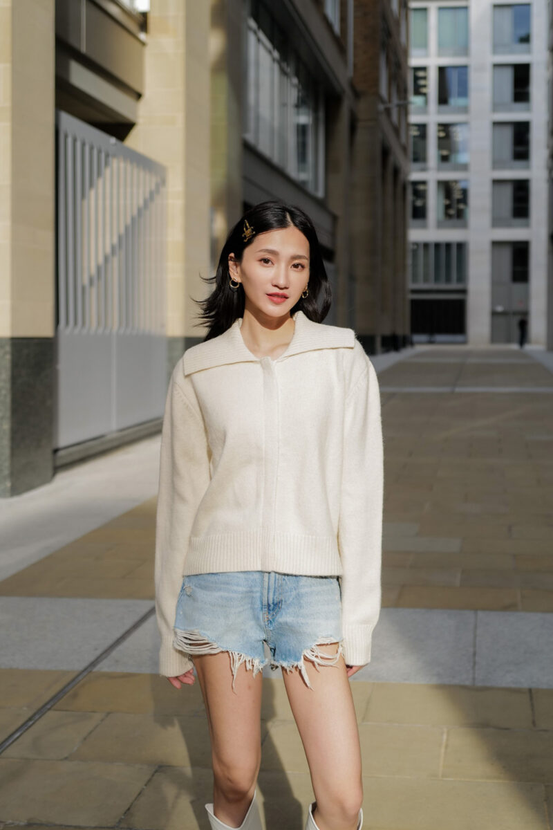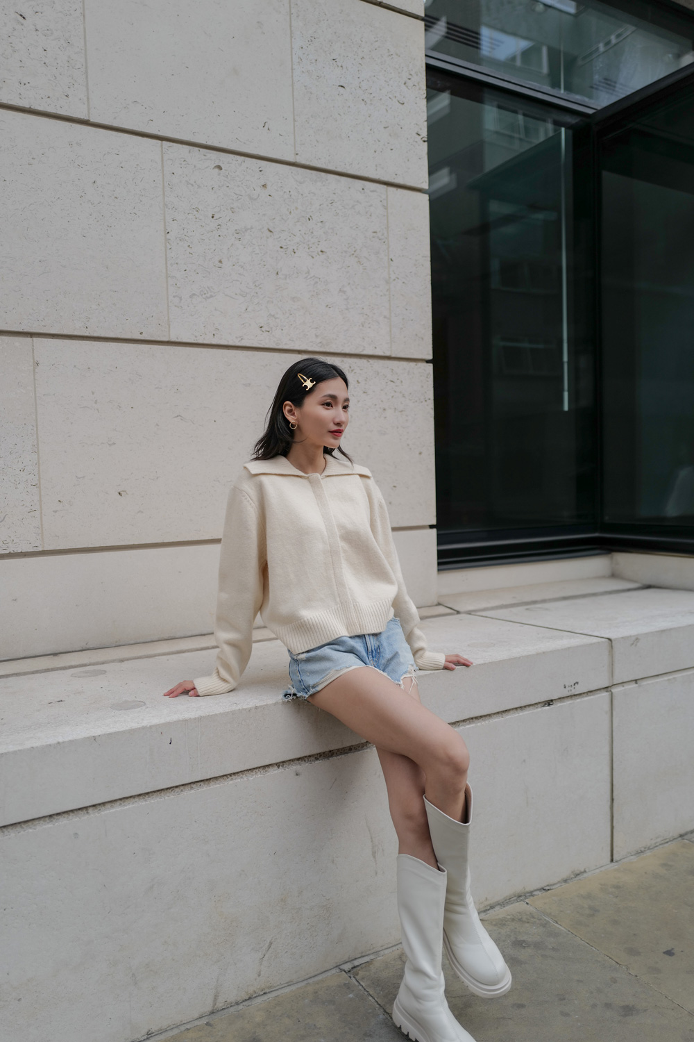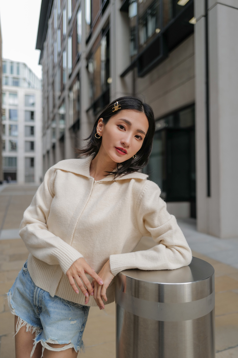 สเวตเตอร์คอปกมีซิปตรงกลาง มีกิมมิคคือเป็นซิปซ่อนทำให้เวลาใส่จะไม่เห็นซิป เนื้อผ้ามีความนุ่มนิ่ม ใส่สบาย สามารถใส่กันหนาว กันลมได้จริง น้องสามารถใส่ได้ 2 แบบ คือใส่แบบเปิดเป็นเสื้อคลุม หรือรูดใส่ซิปเป็นสเวตเตอร์คูลๆ สามารถแมทช์ได้สนุกมากๆ ใส่กับกางเกงยีนส์หรือกระโปรงสั้น-ยาวก็น่ารัก Must Have Item เลยค่ะ