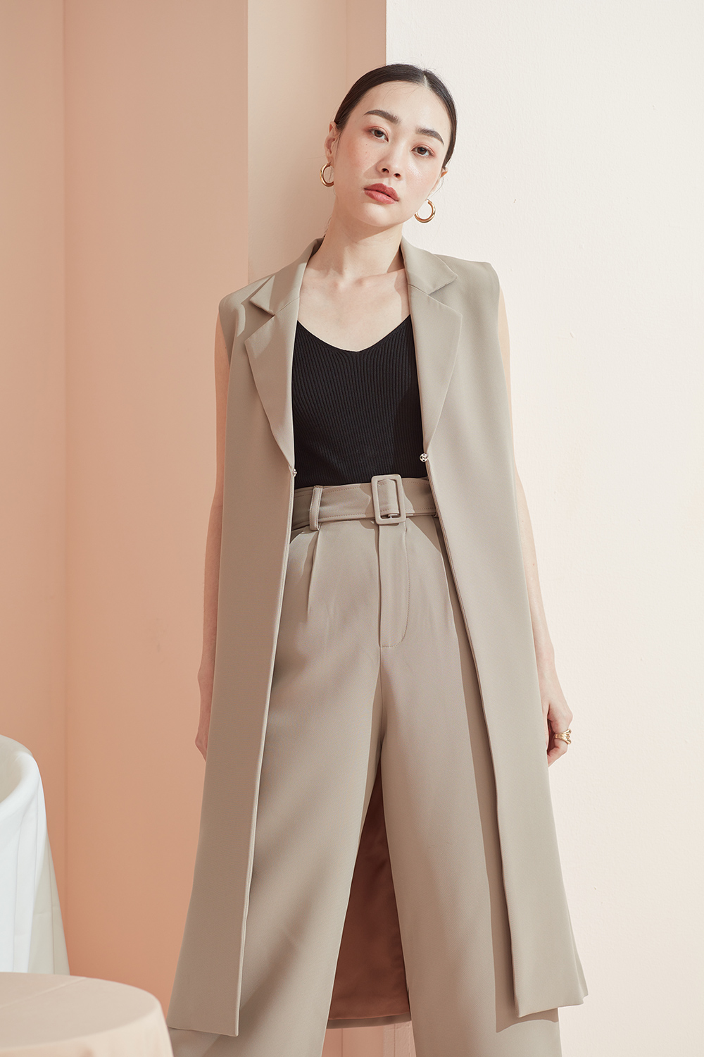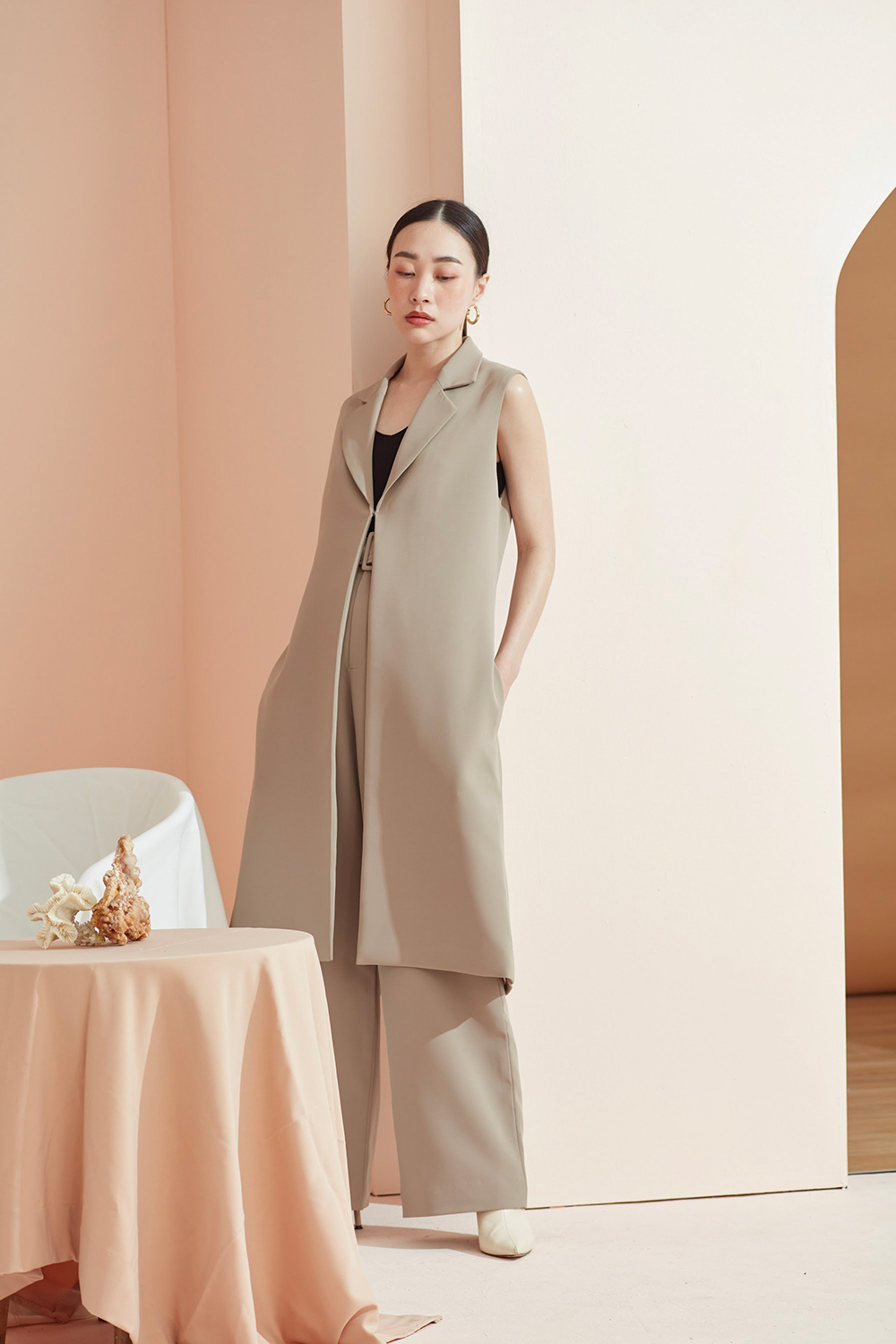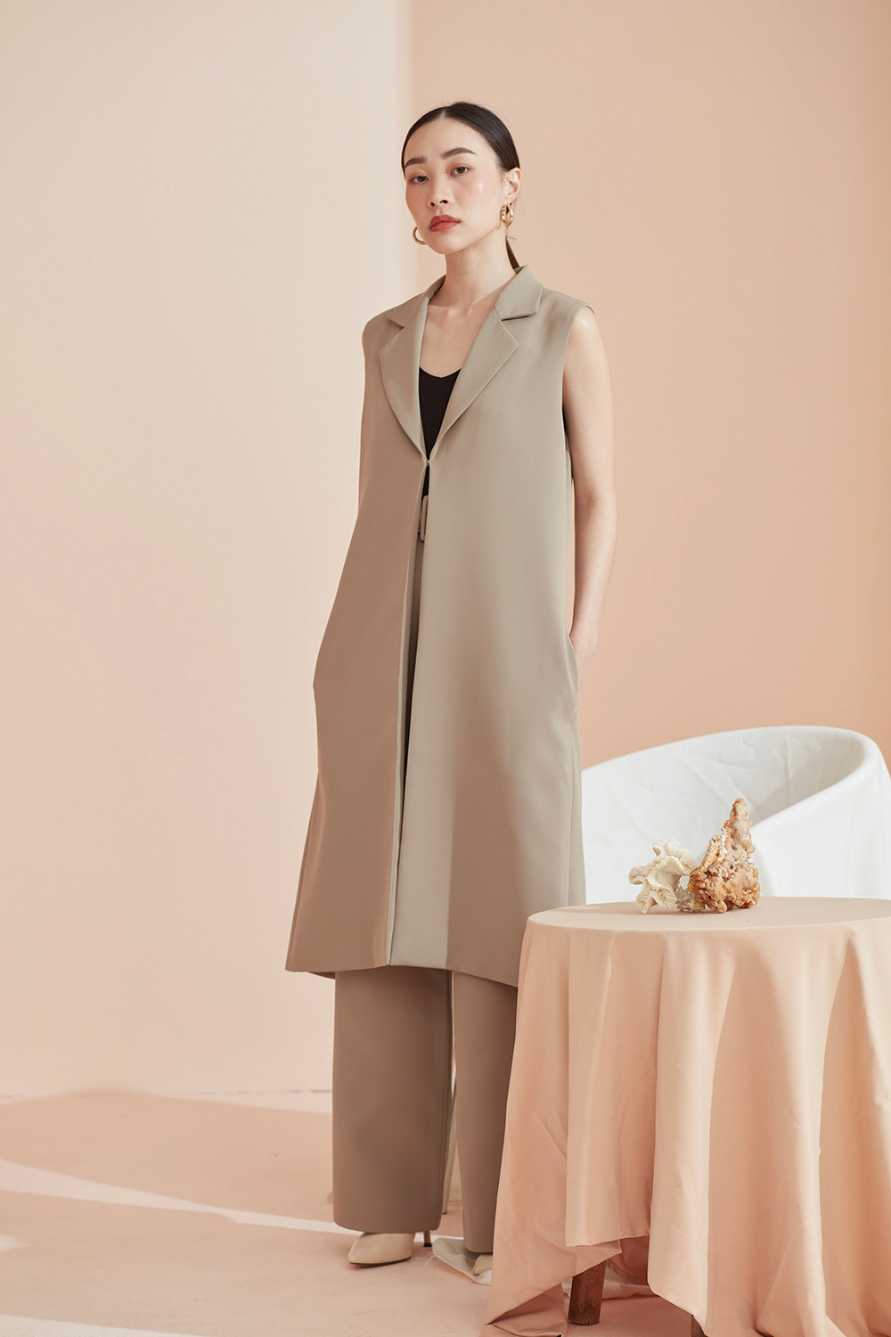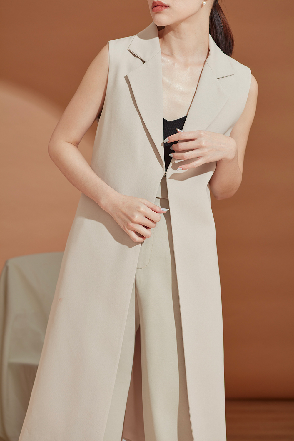 เสื้อคลุมเบลเซอร์แขนกุด ตัวยาวสามารถแมทช์กับชุดได้ง่ายทั้งขาสั้นและขายาว ได้ลุคดูดีแบบ Casual ขึ้น สามารถใส่คู่กับสเวตเตอร์ยาวไปเที่ยวต่างประเทศได้หรือใส่คลุมสายเดียวในประเทศ ด้านข้างมีกระเป๋าไว้ใส่ของได้ด้วยนะคะ ผ้าใส่สบาย รองกาวและมีซับในเย็บกลับทั้งตัว
