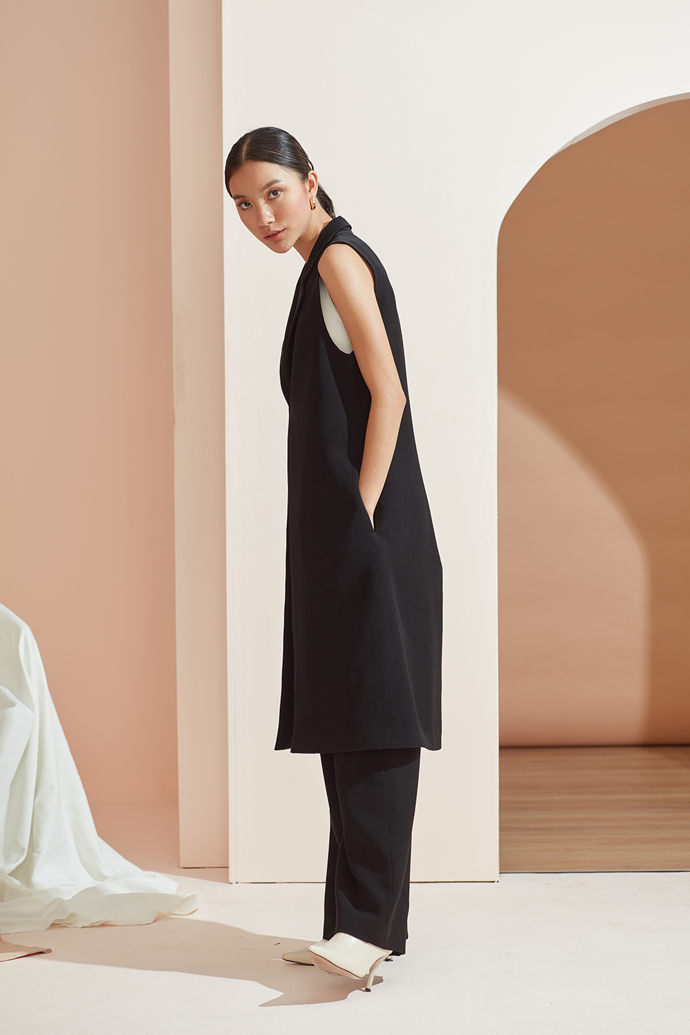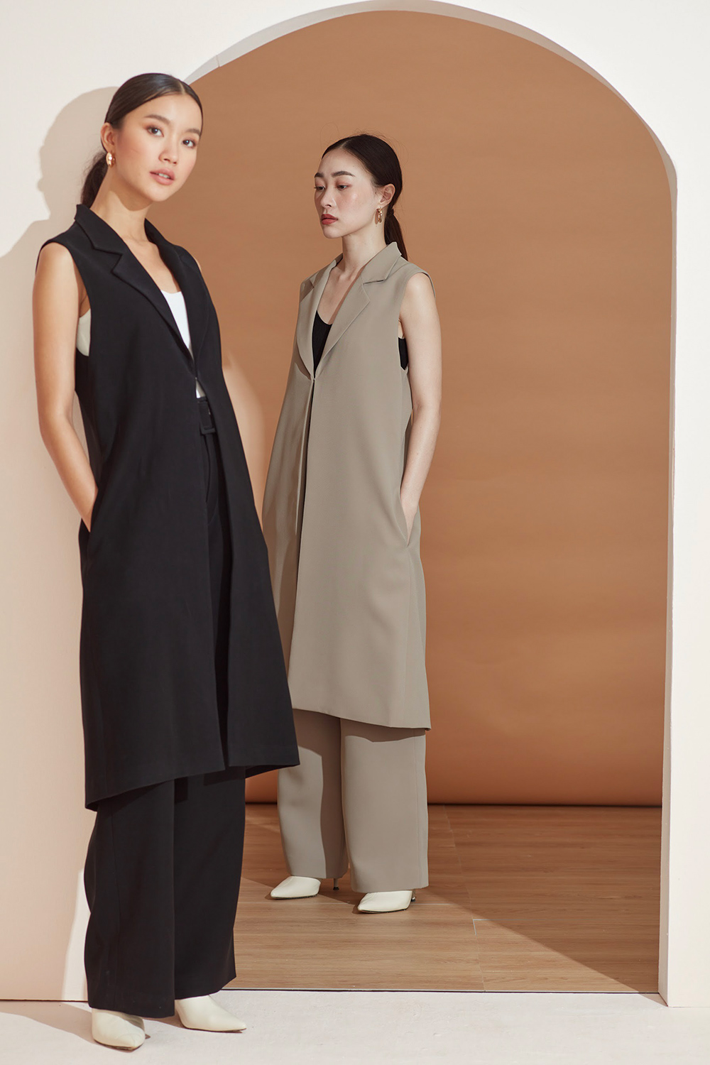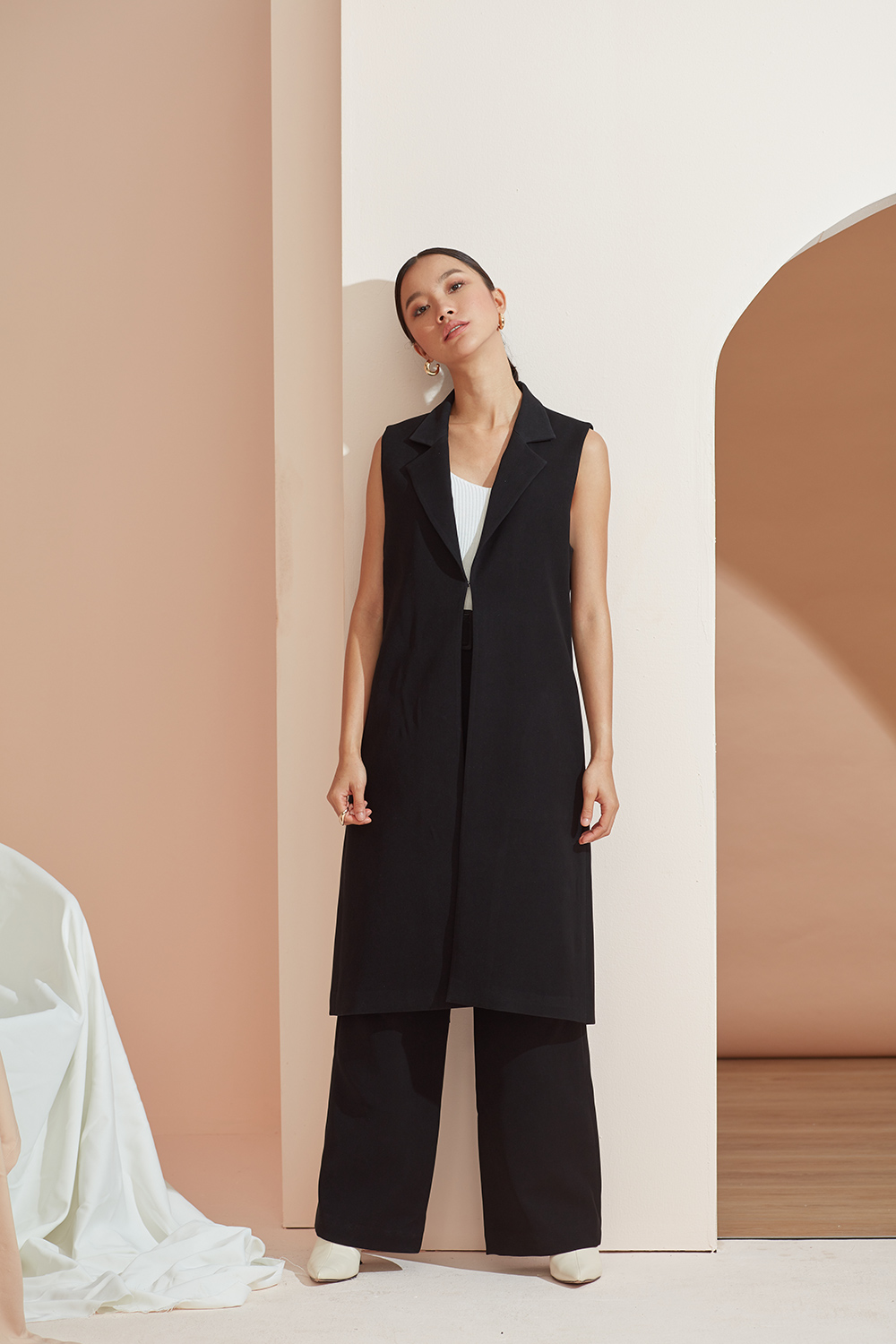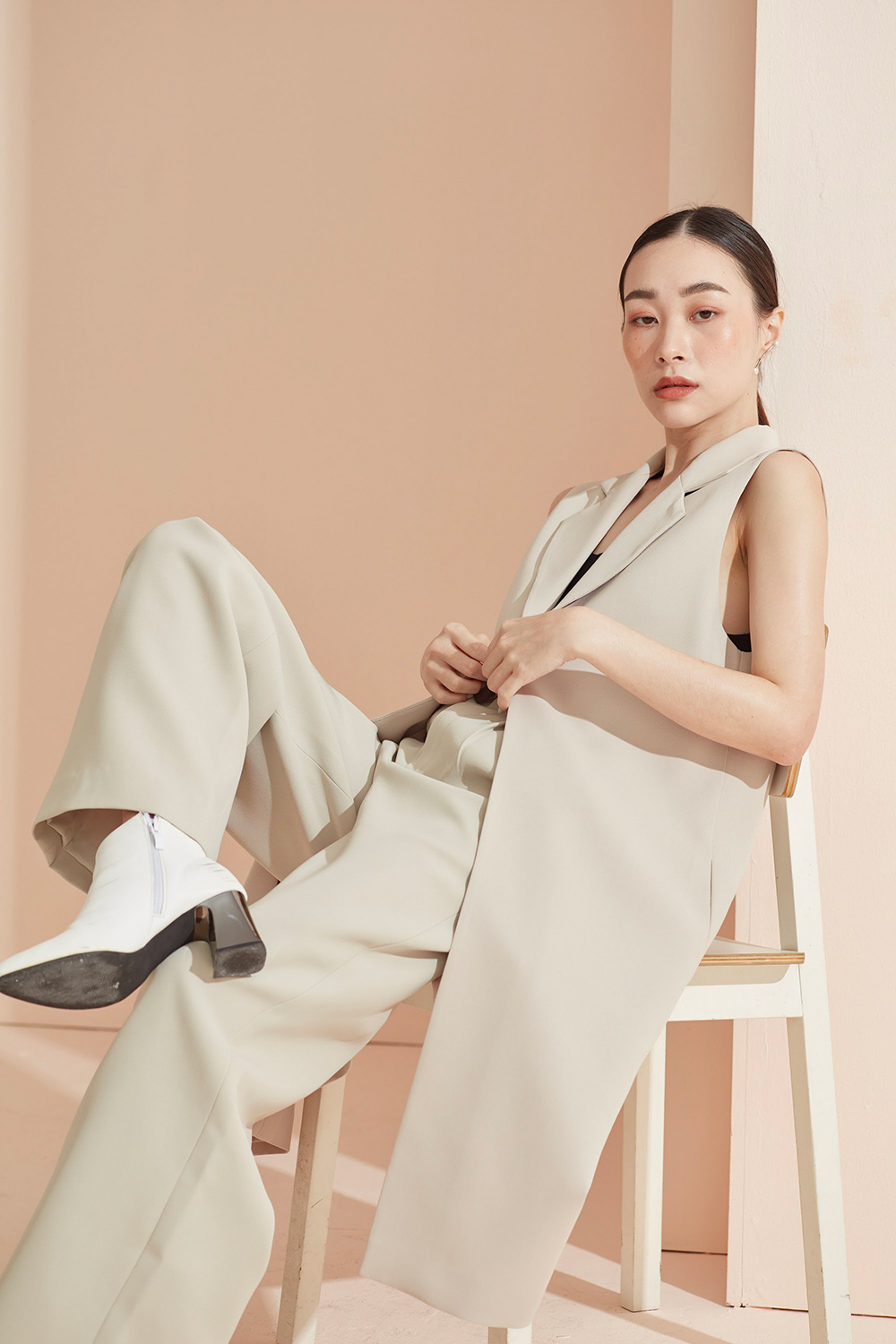 เสื้อคลุมเบลเซอร์แขนกุด ตัวยาวสามารถแมทช์กับชุดได้ง่ายทั้งขาสั้นและขายาว ได้ลุคดูดีแบบ Casual ขึ้น สามารถใส่คู่กับสเวตเตอร์ยาวไปเที่ยวต่างประเทศได้หรือใส่คลุมสายเดียวในประเทศ ด้านข้างมีกระเป๋าไว้ใส่ของได้ด้วยนะคะ ผ้าใส่สบาย รองกาวและมีซับในเย็บกลับทั้งตัว