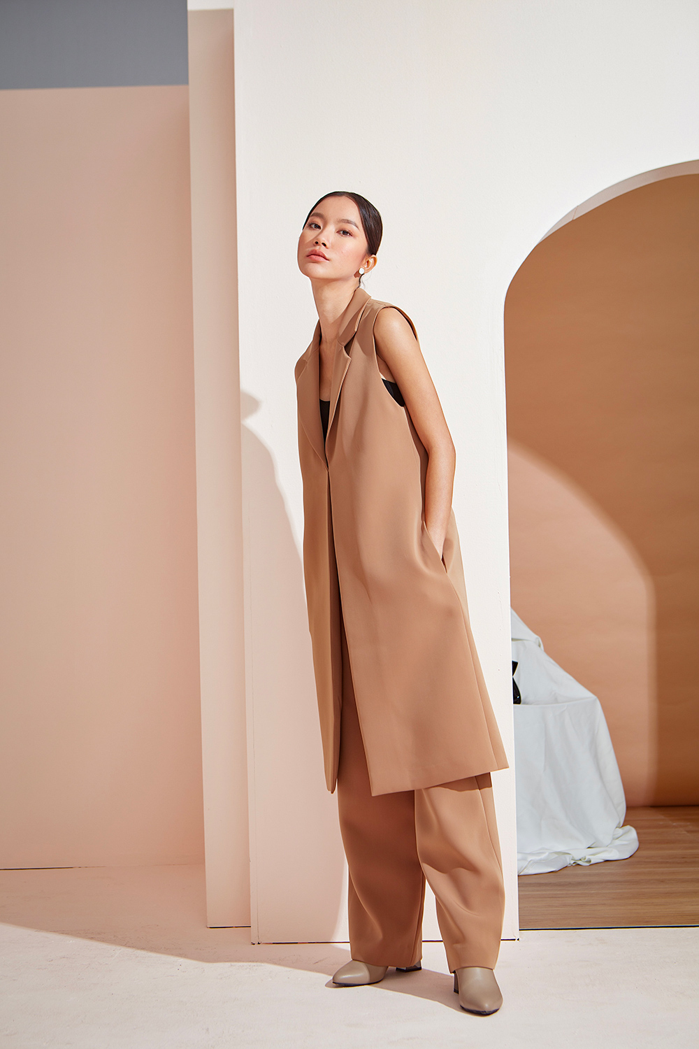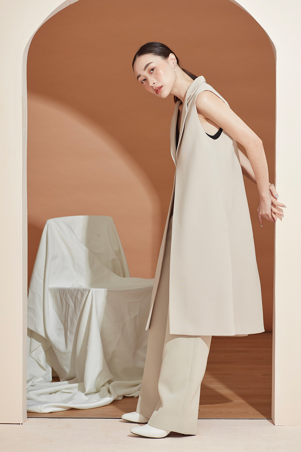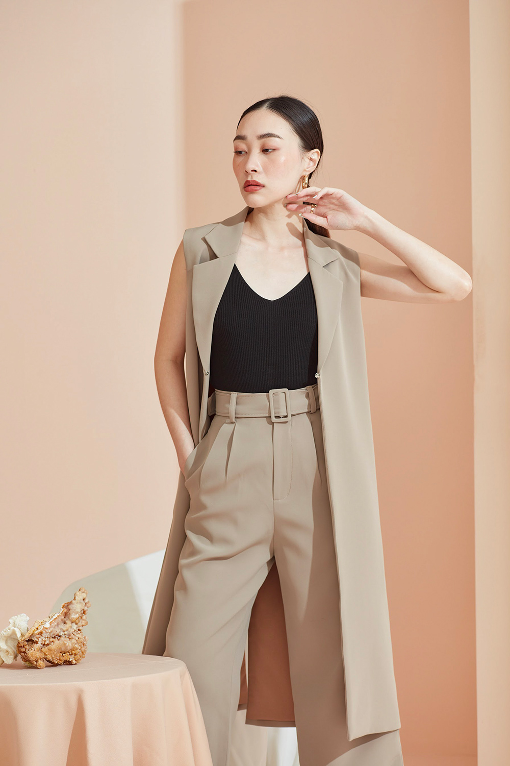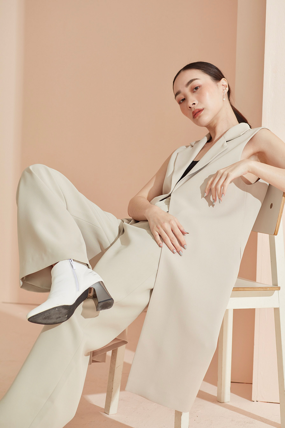 เสื้อคลุมเบลเซอร์แขนกุด ตัวยาวสามารถแมทช์กับชุดได้ง่ายทั้งขาสั้นและขายาว ได้ลุคดูดีแบบ Casual ขึ้น สามารถใส่คู่กับสเวตเตอร์ยาวไปเที่ยวต่างประเทศได้หรือใส่คลุมสายเดียวในประเทศ ด้านข้างมีกระเป๋าไว้ใส่ของได้ด้วยนะคะ ผ้าใส่สบาย รองกาวและมีซับในเย็บกลับทั้งตัว