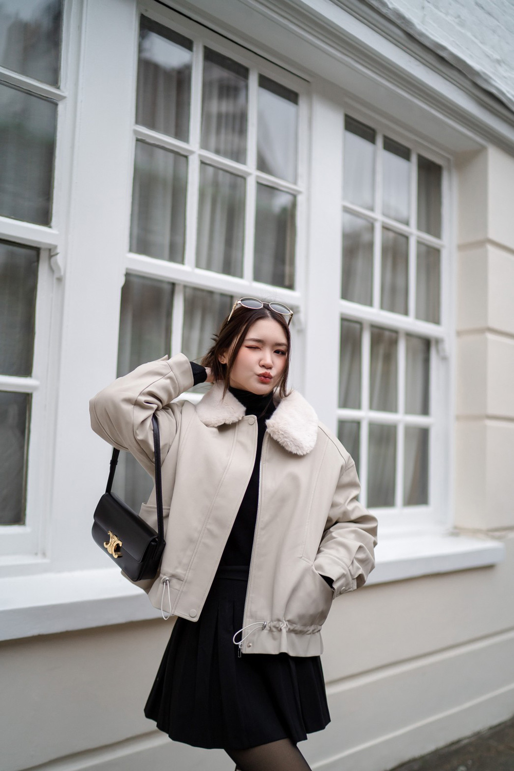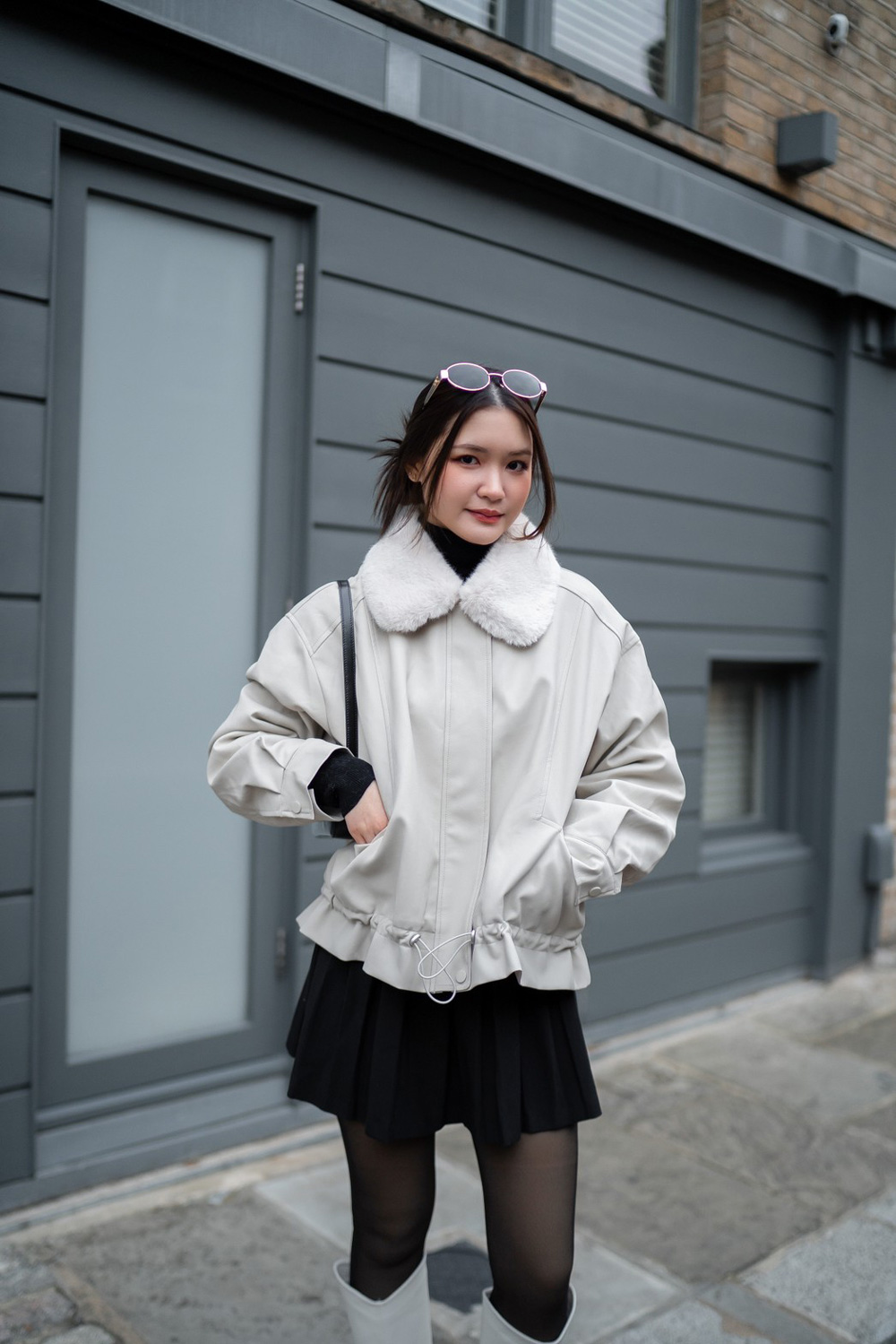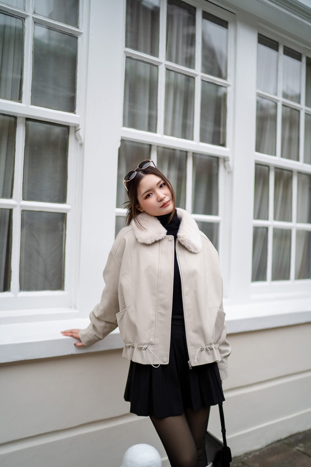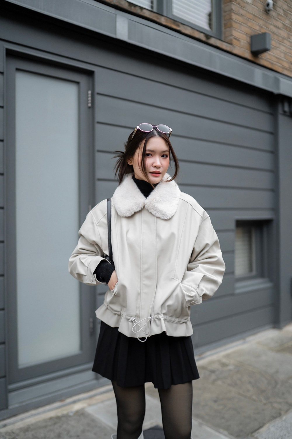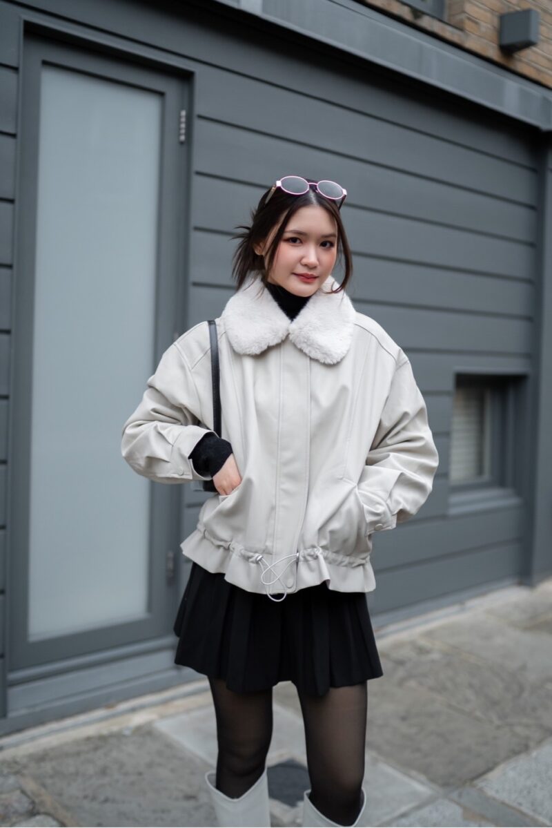 แจ็กเก็ตหนังมีซิป บุขนนุ่มด้านใน และขนตรงคอที่นุ่มฟูกันลมได้ดี พร้อมกระเป๋าให้ซุกมือทั้ง 2 ข้าง สามารถใส่ได้หลายแบบ จะเอาซิปออกเป็นแจ็กเก็ตธรรมดา จะรูดซิป หรือจะรูดเชือกให้จั๊มเอวได้เลย มาด้วยกันถึง 4 สี ใส่สนุกไม่เบื่อแน่นอนค่ะ